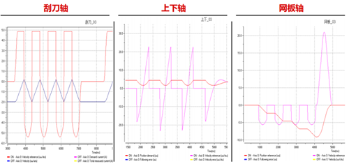 (1)絲網(wǎng)印刷機共4個伺服軸,分別為:旋轉(zhuǎn)軸、刮刀軸、上下軸和網(wǎng)軸