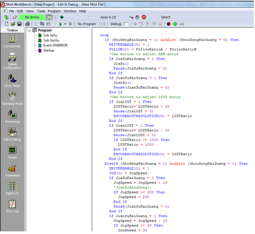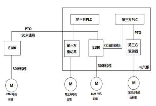 改進(jìn)方案:將驅(qū)動(dòng)后輥的e180移出此電氣柜,縮短反饋線纜長(zhǎng)度30米(PTO傳輸線纜使用50米的雙絞線)