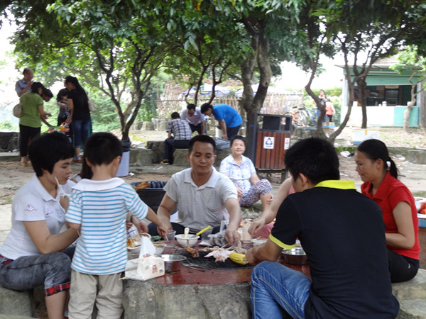早上9:00采購(gòu)東西,10:00出發(fā),沒(méi)用多久就到了松山湖,可是松山湖太大了,不知道該怎么去燒烤場(chǎng),一邊走一邊找地方,后繞了一大圈,決定踩單車進(jìn)去,本以為很快就到了,沒(méi)想到踩了大半個(gè)小時(shí)才到達(dá)燒烤地。這時(shí)已經(jīng)是12:00了,大家都餓壞了,趕緊分工開(kāi)起來(lái),男生負(fù)責(zé)清點(diǎn)燒烤工具,準(zhǔn)備生火;女生洗菜,忙碌的燒烤之旅就這樣開(kāi)始了。