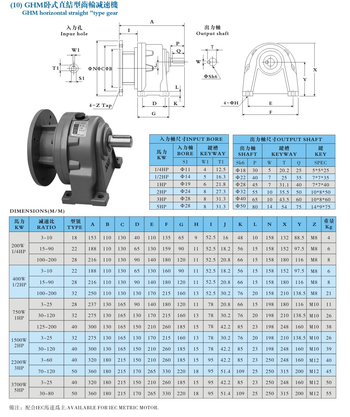 - GH臥式縮框型齒輪減速馬達(dá)安裝尺寸圖