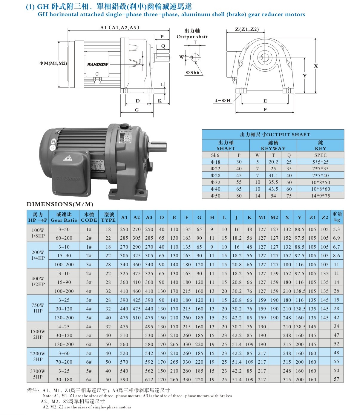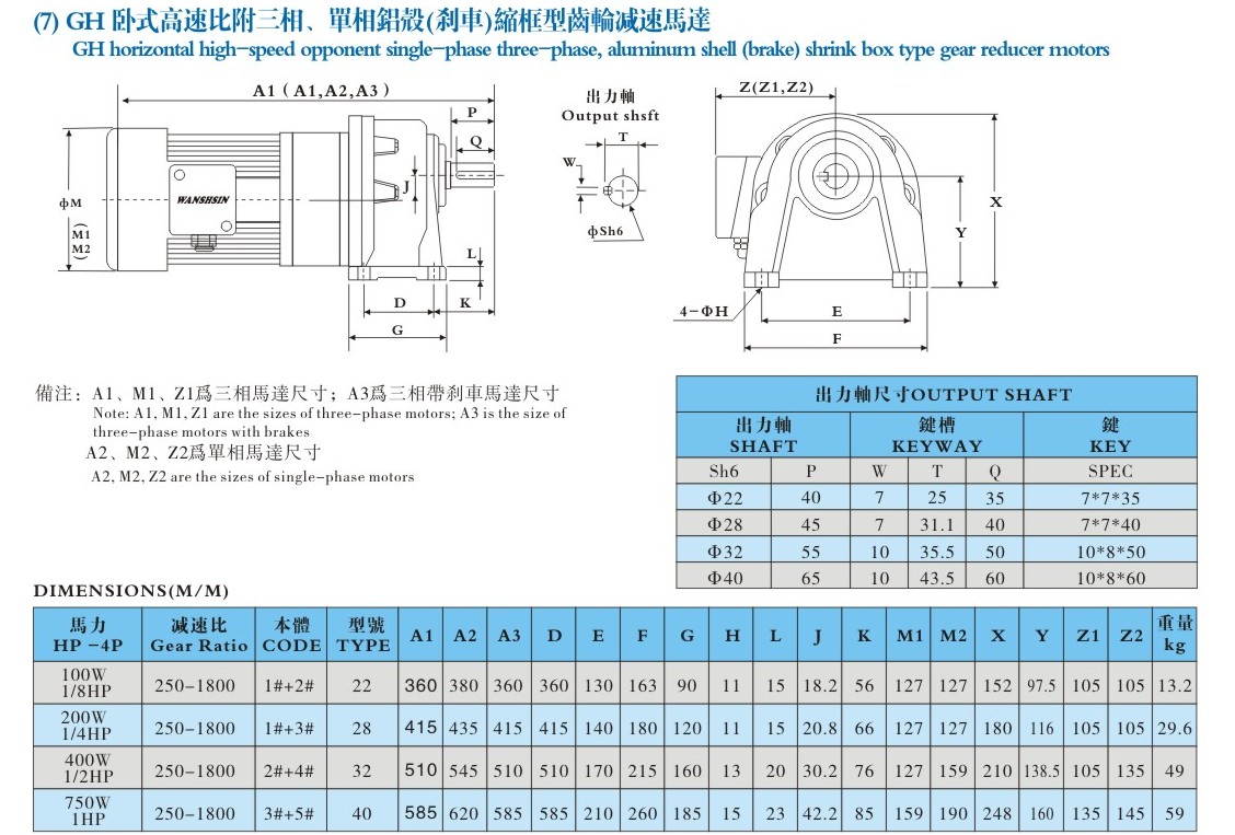 - GH臥式附三相、單相(剎車)縮框型馬達(dá)安裝尺寸圖